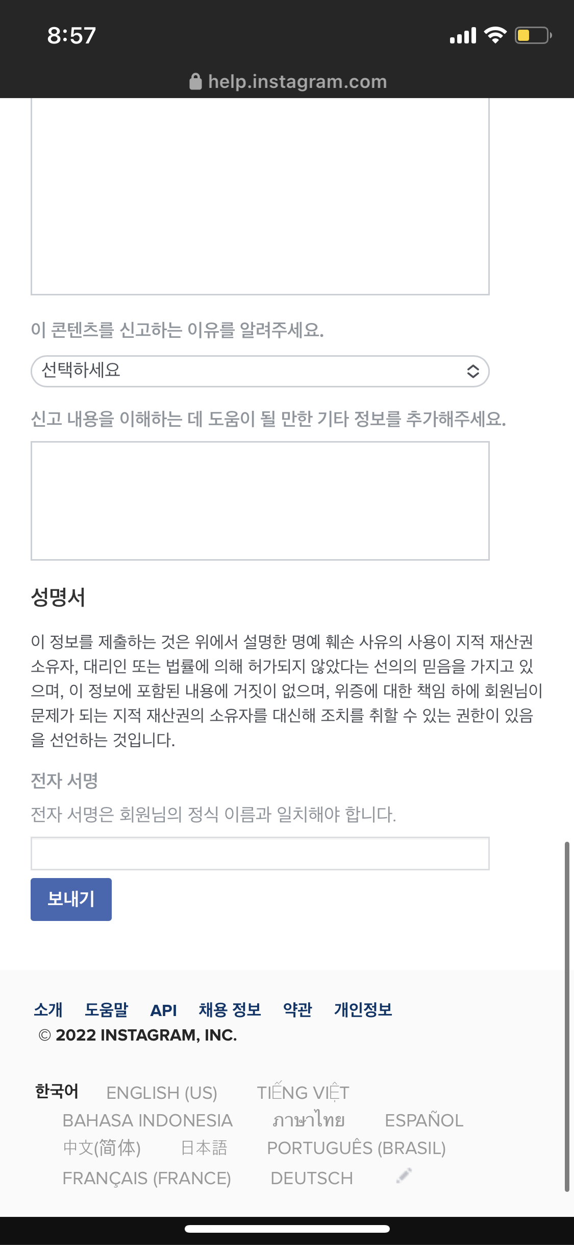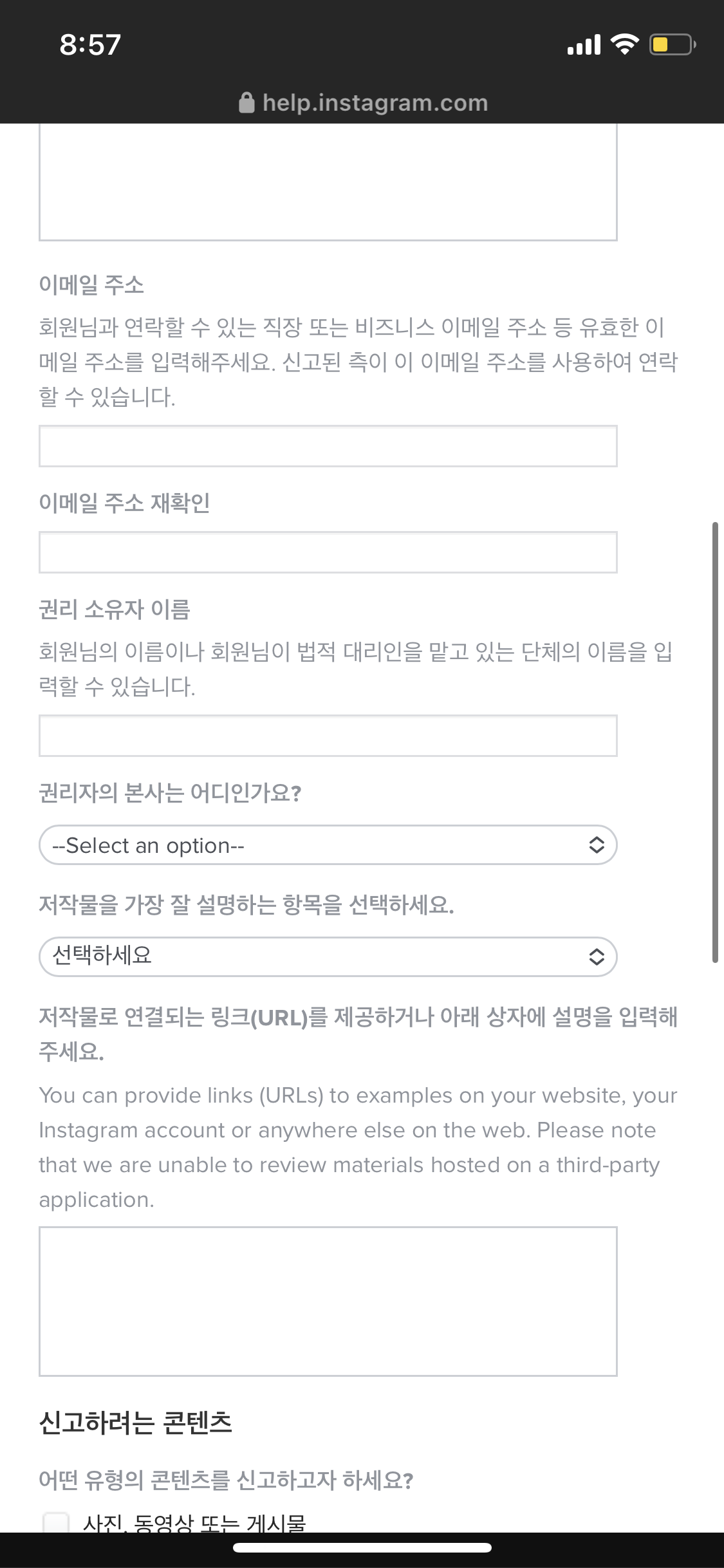 8. 이곳에서는 신고하려는 콘텐츠에 대한 정보를 기입합니다.