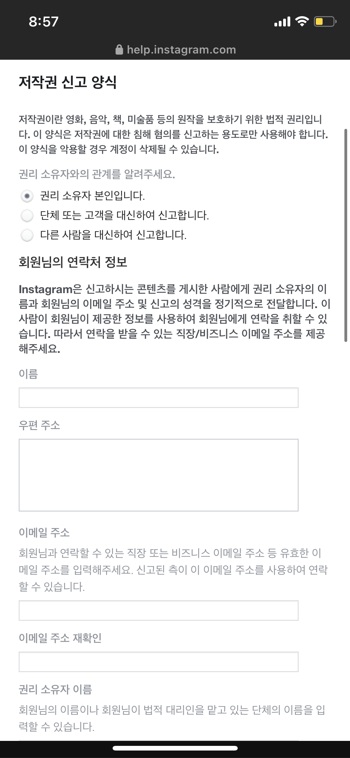 6. 자, 이제 양식 작성입니다.