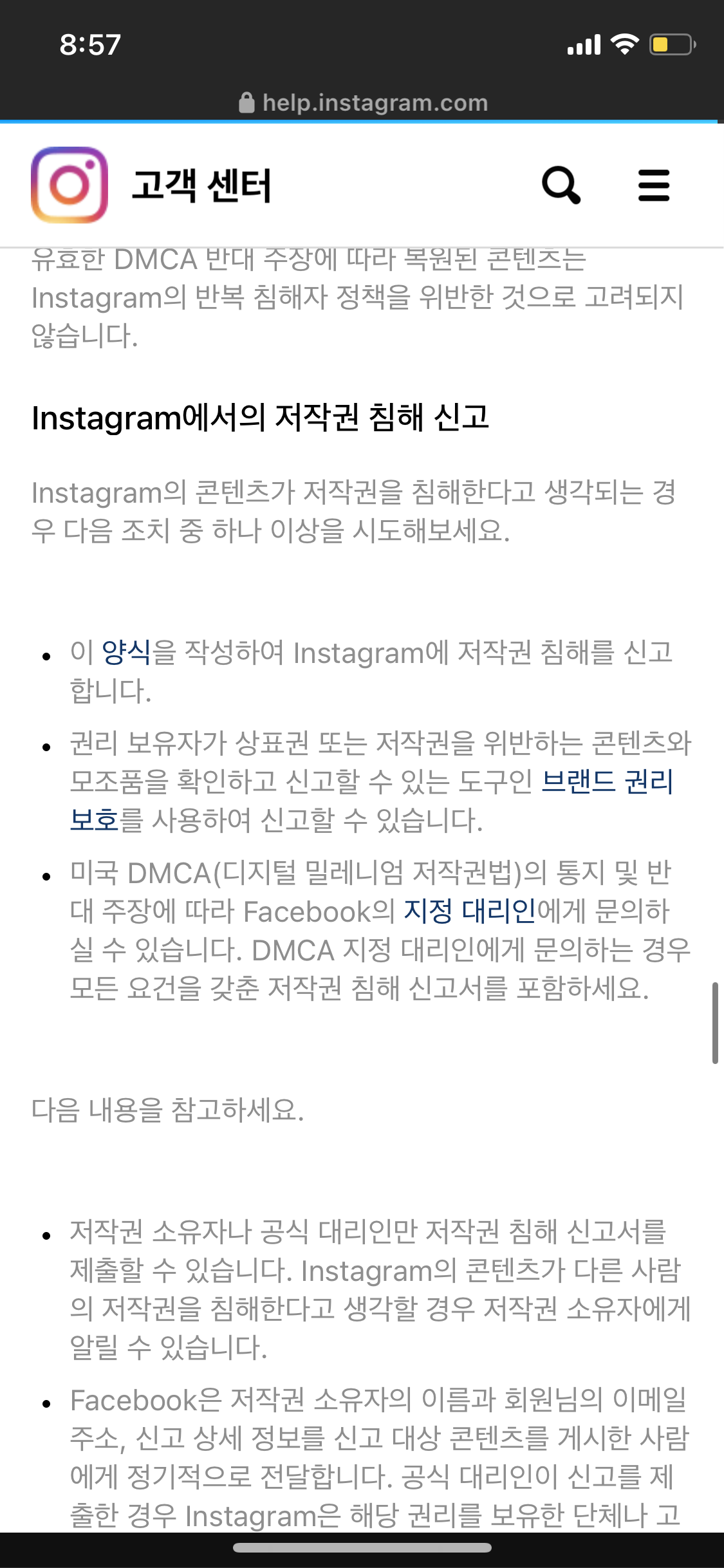4. 글씨가 작게 되어 있지만 "저작권 위반 신고" 하이퍼링크를 클릭 해줍시다.